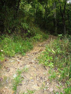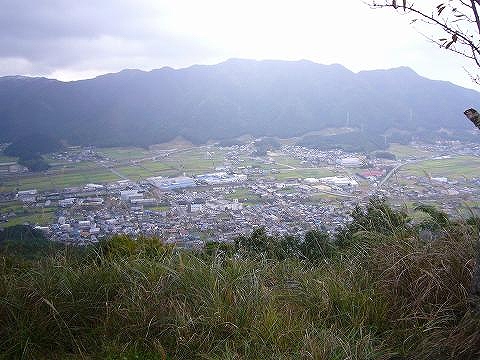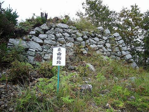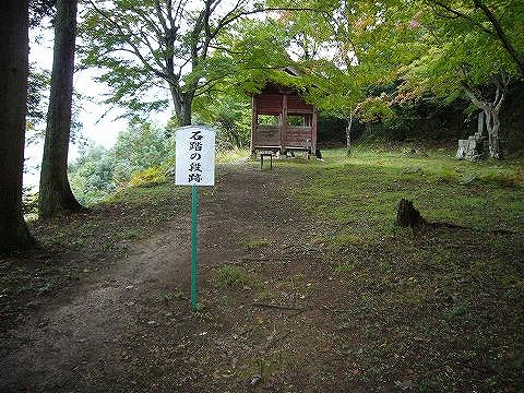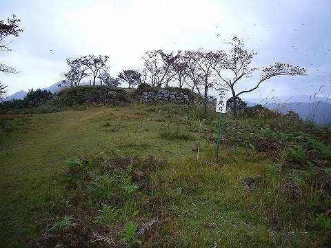 猪ノ口山(357m)の平坦な山頂部に石垣等が残っている