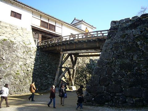 又、石積みは廊下橋の右側はごぼ積み、左は一度地震で崩れた後積み直し切り積みになっています。