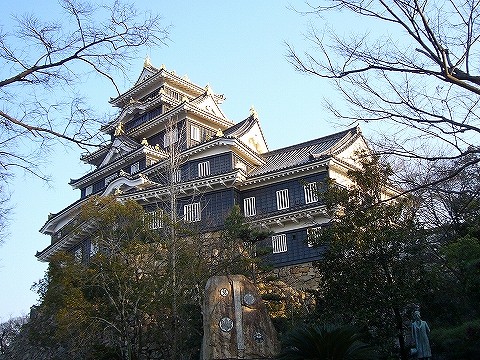 石垣 池田忠雄が1620年代に築いた石垣で、上には月見櫓が建っている。隅部は表面を特に平らに整えた方形の割石を配し、その長辺を交互に振り分けた算木積みとなっている。石材は白色度の強い花崗岩で、瀬戸内海に浮かぶ犬島(岡山市犬島)で切り出されたものとみられる。 (岡山市 教育委員会 HP岡山城本丸探訪より)