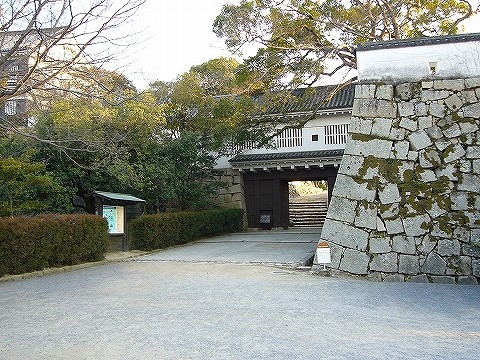 国の重要文化財 本丸の裏口に当たる北西方向を守る櫓である。1620年代に池田忠雄が建てた実物で、国の重要文化財に指定されている。城外側からみれば二階建であるが、城内側からは三階建で、最下は床下の土蔵となっている。また、城外側は狭い隙間から敵を監視したり、石垣を登る敵を迎撃するための石落など軍備を高めているが、城内側の特に最上階は開放的で、手すりを備えた縁側がある。また、天井板を張るなど居住性を高めた造りで、戦国時代の終結に応じた和戦両用の特徴をもつ。