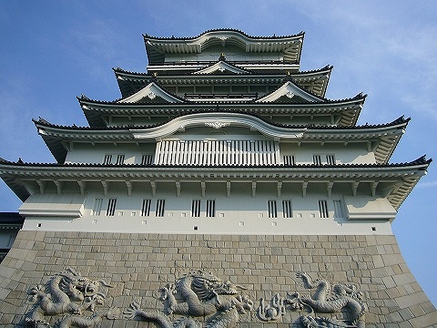 天守台石垣には勝山市を流れる九頭竜川の竜をイメージした9頭の迫力のある龍がレリーフされています。