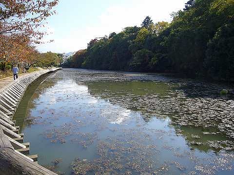 堀の跡じゃないかと思われる北の堀から続く城の西側の道